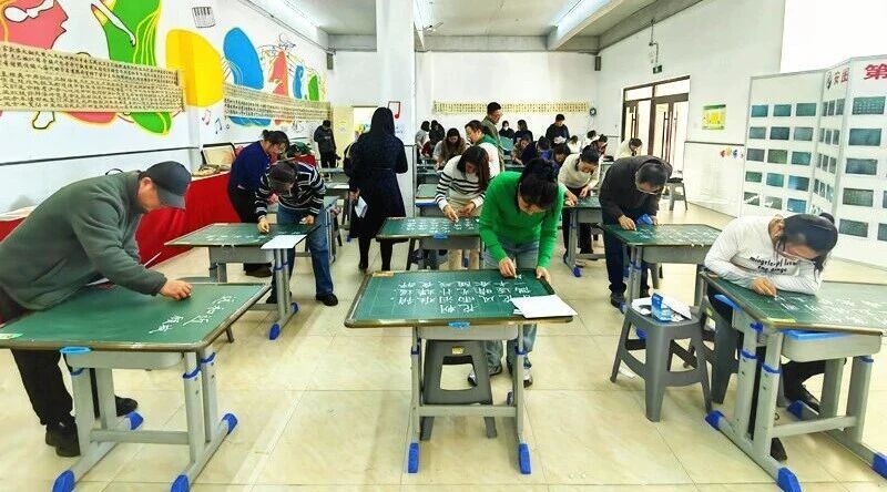 日前,延边州第三届“兰亭杯”教师三笔字竞赛粉笔字决赛在安图县第二实验小学校成功举办。来自全州8个县市的206名教师齐聚一堂,在方寸黑板间展现书法技艺与教学风采。